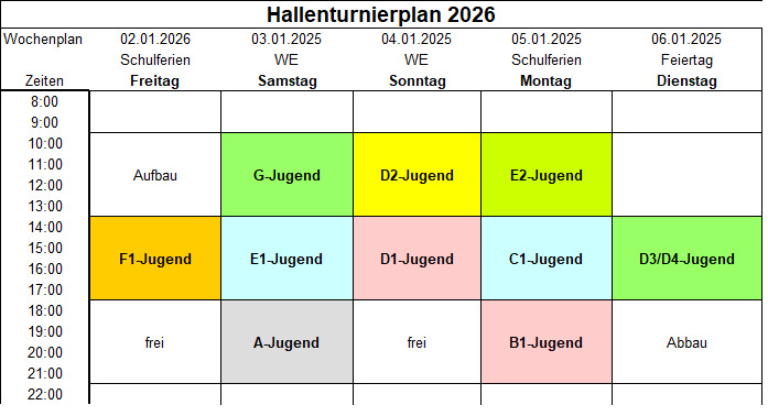 Anbei die Aufteilung der einzelnen Jugendspieltage. Wir freuen uns auf Euer Kommen.